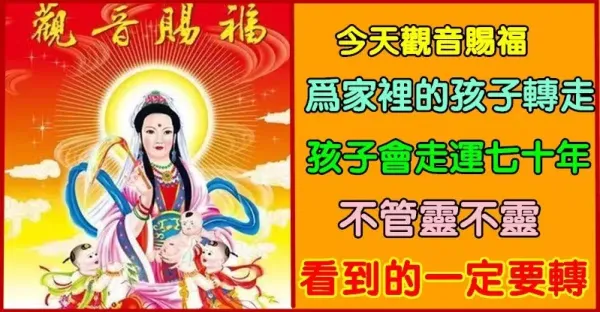 今天觀音賜福,為家裡的孩子轉走,孩子會走運七十年