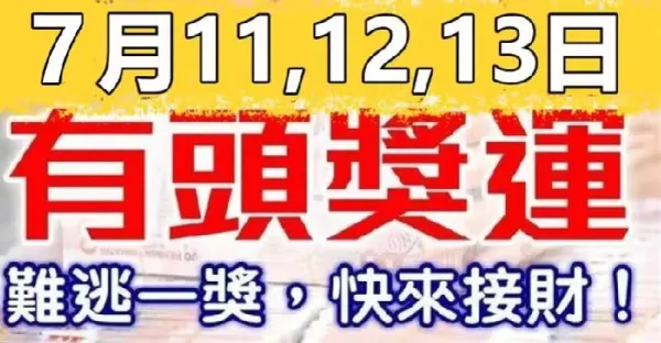 7月11、12、13日:最有頭獎運!「6大生肖」難逃一獎:快來接財