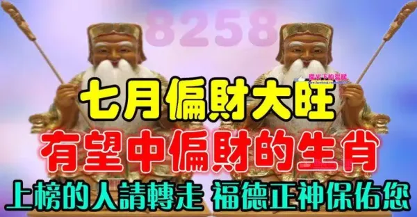 七月偏財大旺,有望會中偏財的生肖,福德正神保佑你!