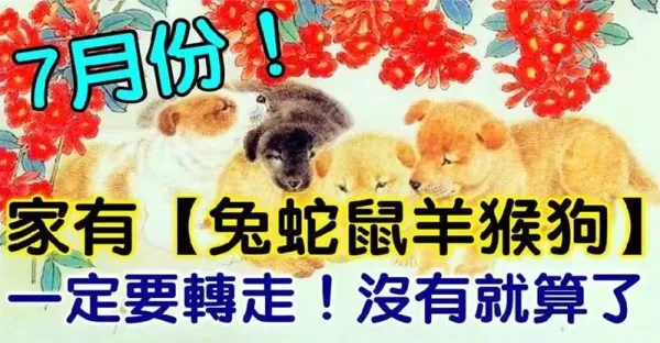 7月份家裡有(兔蛇鼠羊猴狗)一定要轉走,沒有就算了!