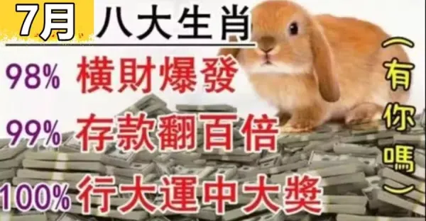 7月份橫財爆發,行大運中大獎,存款翻百倍,必大富特富的生肖