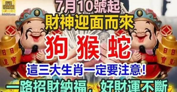 7月10號起財神迎面而來,一路招財納福,好財運不斷的三屬相
