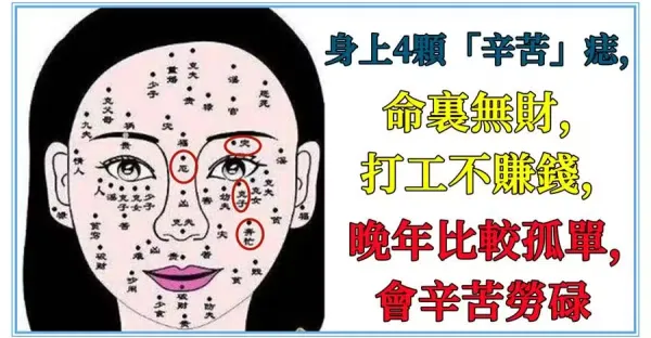 身上4顆「辛苦」痣,命里無財,打工不賺錢,晚年比較孤單,可能會辛苦勞碌