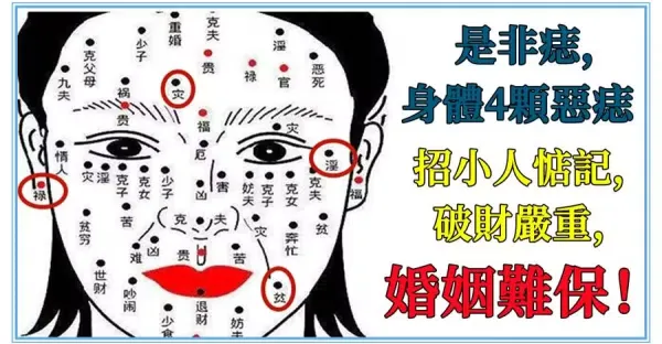 是非痣,身體4顆惡痣,招小人惦記,破財嚴重,婚姻難保!