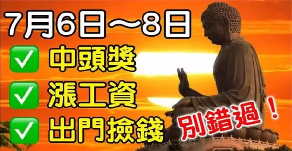 7月6~8日中頭獎,漲工資,出門撿錢的生肖