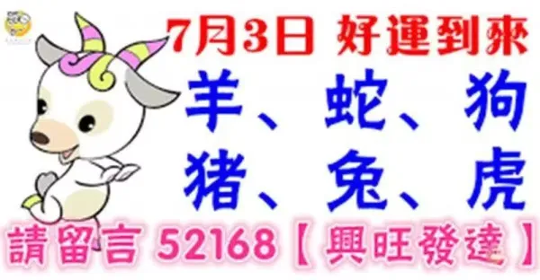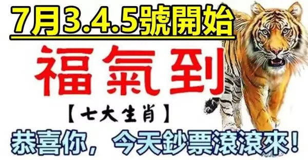 7月3.4.5號開始福氣到,恭喜七生肖鈔票滾滾來