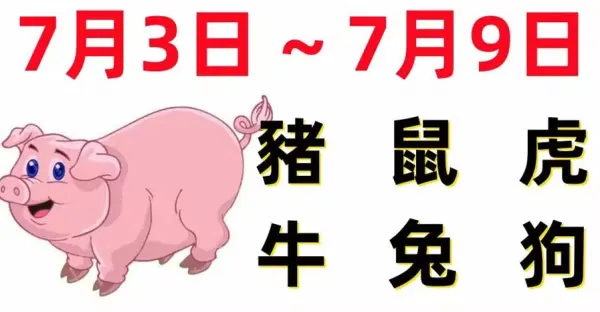 12生肖一周運勢(7月3日~7月9日)特吉生肖:豬、鼠、虎!次吉生肖:牛、兔、狗!