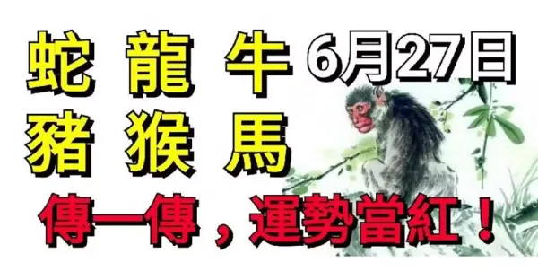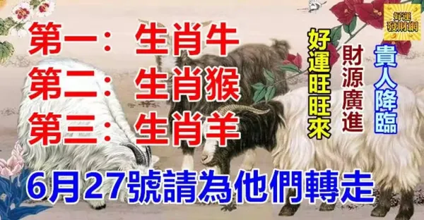 你身邊有屬牛,猴,羊的人嗎?6月27號請為他們轉走