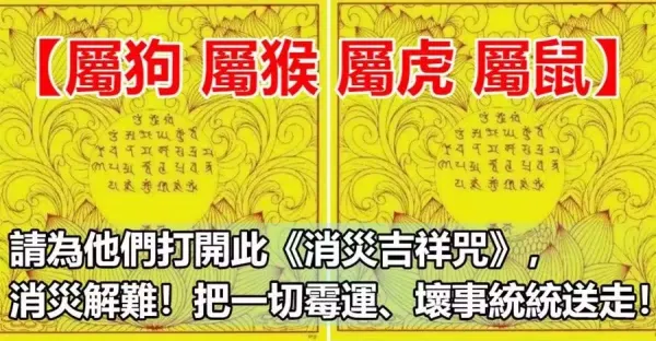 這四生肖,七月份有一難!請為他們打開此《消災吉祥咒》,消災解難!把一切霉運、壞事統統送走!