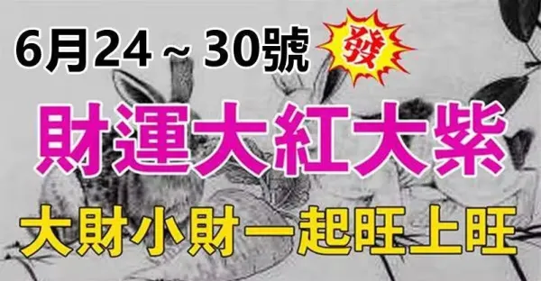 6月24~30號財運大紅大紫,大財小財一起旺上旺的生肖