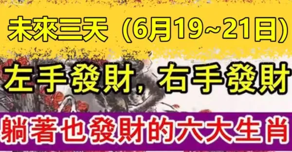 未來三天(6月19~21日)左手發財,右手發財,躺著也發財的生肖!