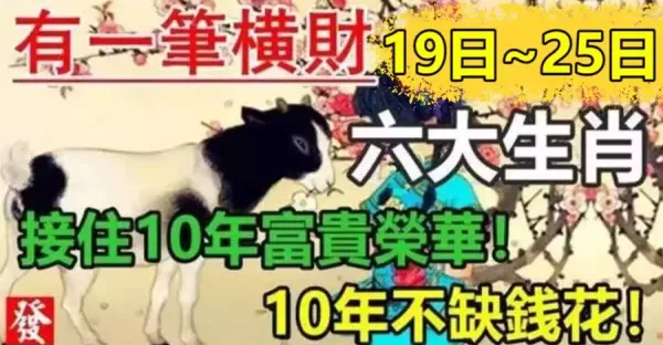 6月19號註定被橫財砸中,有數錢之喜的生肖