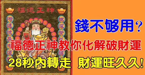錢不夠用?福德正神說只要這樣做化解破財運!28秒內轉走,財運旺久久!!