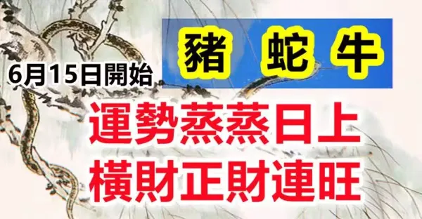 6月15日開始運勢蒸蒸日上,鴻運當頭,三生肖橫財正財連旺