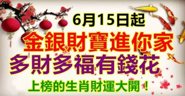 6月15日起金銀財寶進你家,多財多福有錢花,上榜的生肖財運大開有你嘛