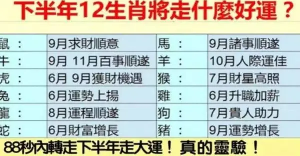 下半年12生肖將走什麼好運?轉走下半年走大運