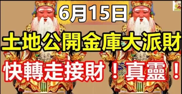 今天6月15日,土地公大開金庫大派財! 這幾個生肖快來接財!