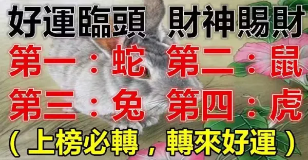 明日起好運臨頭、財神賜財、腰纏萬貫的四大生肖