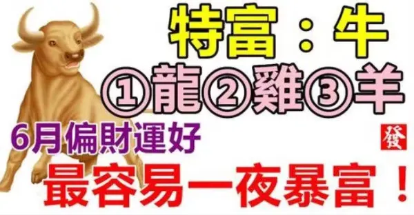6月偏財運好,容易被錢砸中,有望一夜暴富的四大生肖!