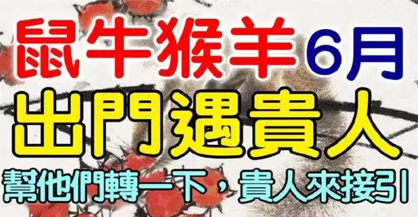 (鼠牛猴羊)6月出門遇貴人,貴人自然來接引