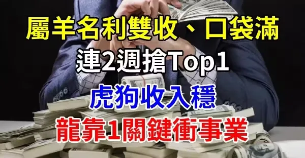 屬羊「名利雙收、口袋滿」連2週搶Top1!虎狗收入穩,龍靠1關鍵衝事業