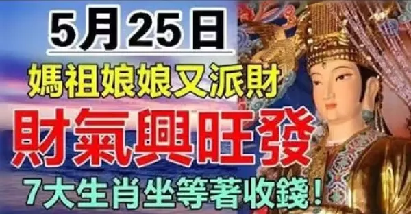 媽祖娘娘又派財,5月25日財氣興旺發,七大生肖坐等著收錢