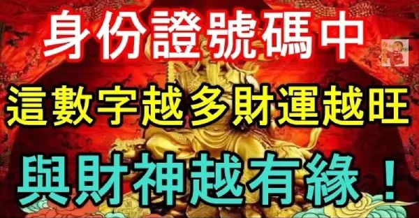 身份證號碼中,有些數字越多,財運越旺,與財神越有緣~