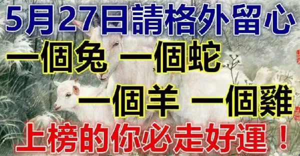 5月27日請格外留心,一個兔,一個蛇,一個羊,一個雞走好運