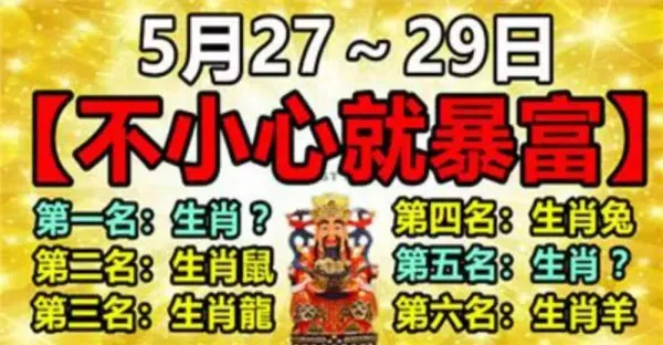 5月27到29日不小心就暴富的生肖