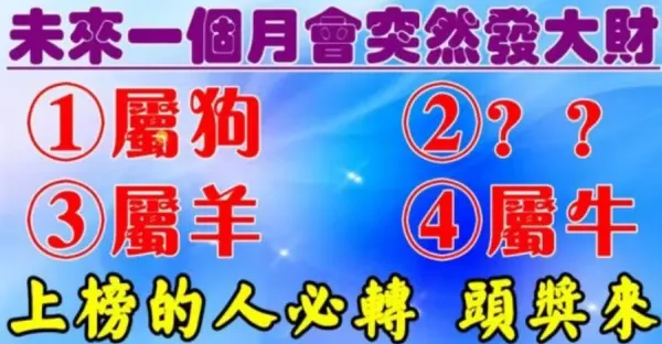 未來一個月會突然發大財的生肖,上榜人轉後頭獎來!
