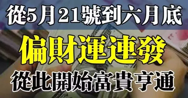 從5月21號到六月底偏財運連發,從此開始富貴亨通的生肖