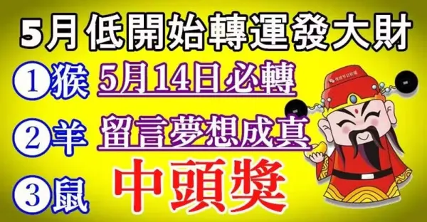 5月低開始轉運發大財的生肖,5月14日必轉,夢想成真