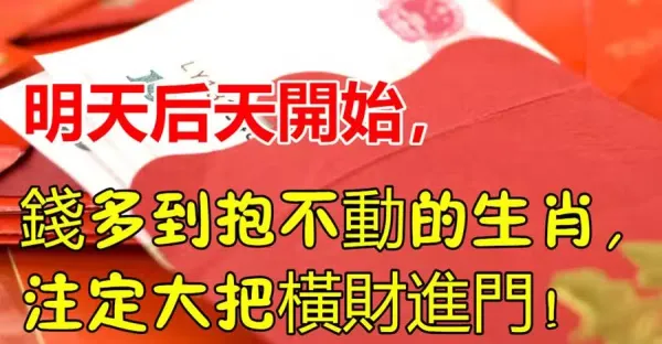明天後天開始,錢多到抱不動的生肖,註定大把橫財進門!