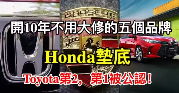 開10年不用大修的五個品牌:Honda墊底,Toyota第2,第1被公認