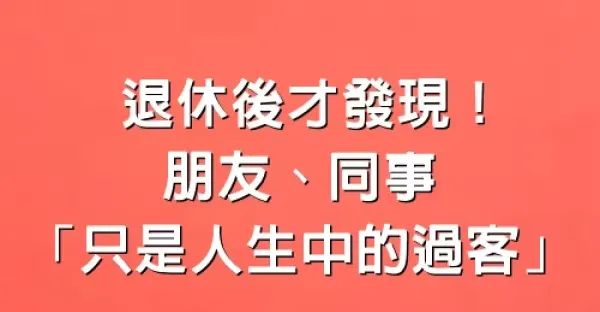 退休後才發現! 朋友、同事「只是人生中的過客」