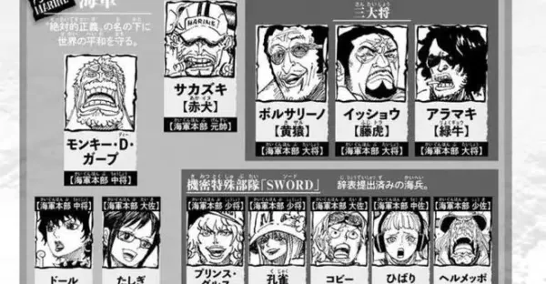 海賊王 : 蛋頭島8位中將能力曝光,SWORD組織的大秘密公布