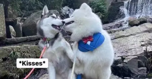 哈士奇被薩摩耶強吻,可沒想到狗子竟是這種反應,笑噴!_官面_高冷