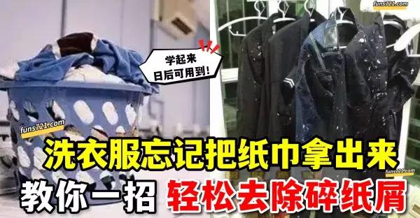 洗衣服忘記把口袋裡面的Tisu拿出來,教你一招,輕鬆去除Tisu