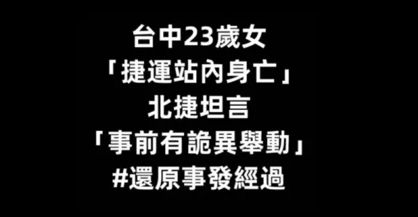 台中23歲女「捷運站內身亡」!!! 北捷坦言「事前有詭異舉動」... #還原事發經過