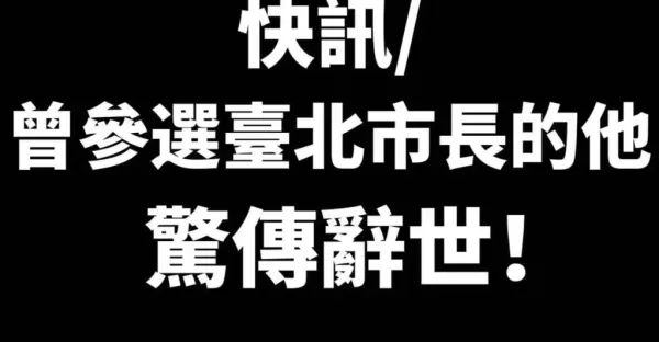 快訊/ 曾參選台北市長的他驚傳辭世!