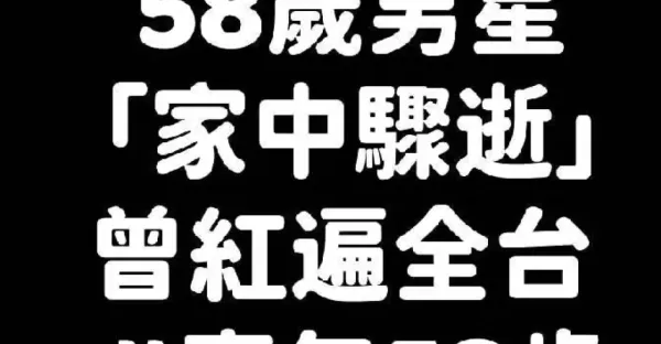 震驚演藝圈!58歲男星「家中驟逝」 曾紅遍全台 #享年58歲..............