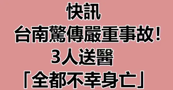 快訊/ 台南驚傳嚴重事故!3人送醫「全都不幸身亡」