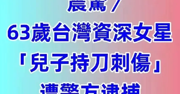 震驚/63歲台灣資深女星「兒子持刀刺傷」 遭警方逮捕!