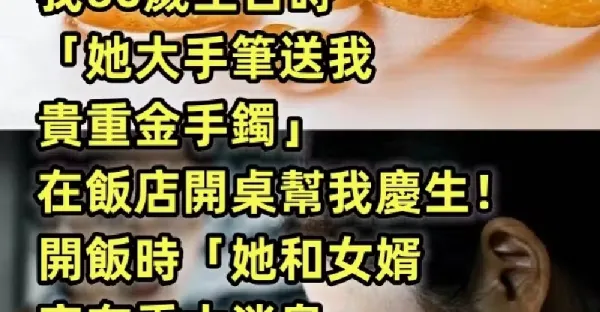 我就一個女兒,她很孝順大家都羨慕我… 我60歲生日時「她大手筆送我貴重金手鐲」在飯店開桌幫我慶生!開飯時「她和女婿宣布重大消息」我卻再也笑不出來:不孝女
