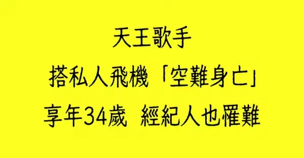 快訊/天王歌手搭私人飛機「空難身亡」享年34歲 經紀人也罹難