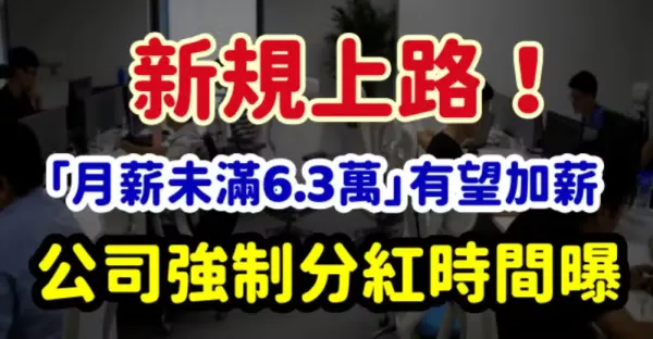新規上路!「月薪未滿6.3萬」有望加薪,公司強制分紅時間曝