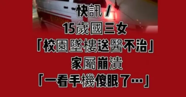 快訊 / 15歲國三女「校園墜樓送醫不治」 家屬崩潰「一看手機傻眼了」