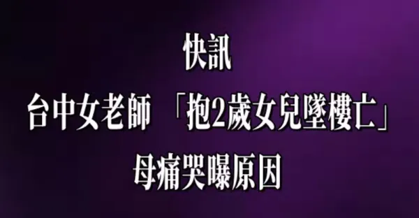 剛在台中女老師「抱2歲女兒墜樓亡」母痛哭曝原因