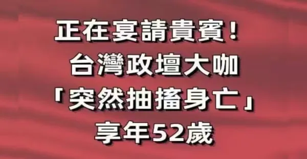 正在宴請貴賓!!! 台灣政壇大咖 「突然抽搐身亡」享年52歲!