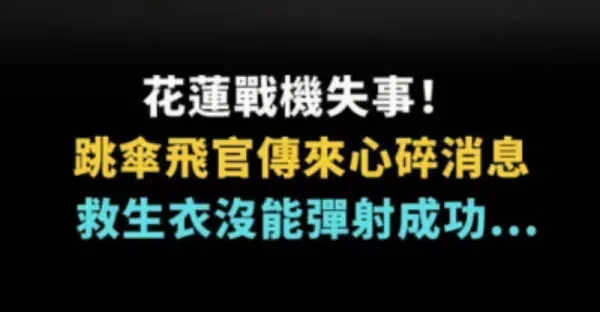 花蓮戰機失事!!! 跳傘飛官傳來心碎消息,救生衣沒能彈射成功...